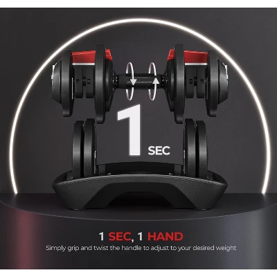 - 【1-sec Adjustment: Grip, Twist, Lift】Designed for streamlined workout sessions, this adjustable dumbbell weight allows for a quick and smooth weight adjustment by twisting the selectorized anti-slip handle clockwise or counterclockwise. The clear dials ensure easy readability for hassle-free customization.
