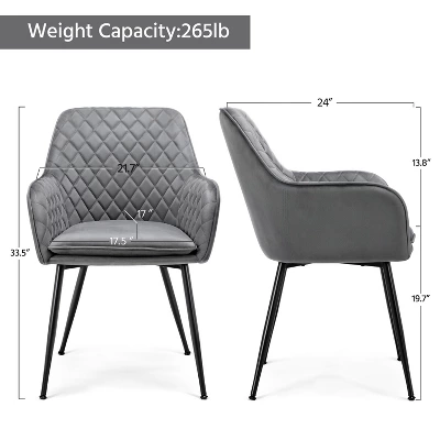 - 【Modern Armchairs】Featuring simple color, plain appearance and strong structure, this set of 2 dining chairs will widely match your furniture and home style. The diamond pattern in the interior of the backrest and the fine stitches make these accent dining chairs charming but not garish.