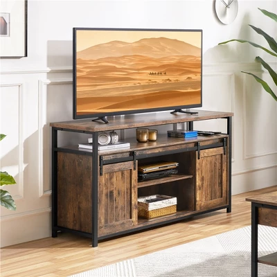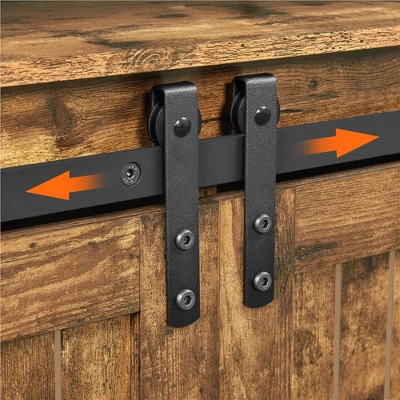 - Vintage barn doors: This storage TV bench is highlighted by barn doors, combining both chic and vintage looks as well as excellent space-saving approach for accessing the shelves. The door runners are smooth and noise-free.