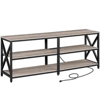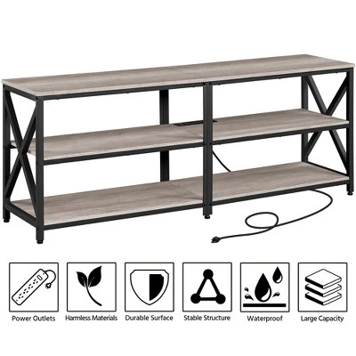 - Home, as everyone’s peaceful harbor, shall be restful and trouble-free. We are dedicated to providing well-designed supplies to help you create your space into a lovely nest! This enhanced TV stand integrates practical functions, tasteful elements, and problem solutions! Suitable for TV up to 75in and within 132 lb, this vintage TV console table comprises 2- layer open shelves under the top to accommodate items like books, magazines, decorations, frames, or other equipment. The middle layer provides a 1500w 4-AC power outlet with a switch and a 6.5ft long cable, saving you from the head-scratching trouble of socket shortage or cable not long enough.