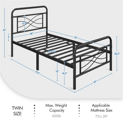 - Bring your home bang up to date with this metal platform bed frame with criss-cross design headboard. With a nod to antique design, this metal bed embraces curved lines, stylish criss-cross design and sleek metallic finish that seamlessly blends with any home decor style. Constructed of a solid and durable metal frame, this bed frame features multiple strong support legs that provide optimal stability for any type of latex, memory foam or spring mattress without a clumpy box spring. Details like the powder-coated finish and non-slip foot caps all contribute to your safety and comfort. Plus, the platform bed frame creates sufficient under-the-bed storage space for your luggage, shoes, bags and other odds & ends, keeping your bedroom tidy and clutter-free. An excellent choice for apartments, condos, studios, dorms, and all types of bedrooms.