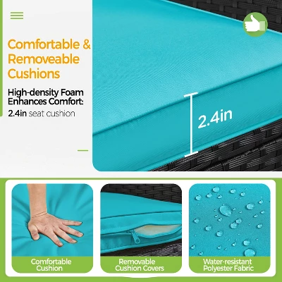 - 【Selected Material, All-weather Coating】This 3-piece outdoor wicker furniture set is constructed from weather-resistant PE rattan, which offers resistance to fading and cracking, preserving its vibrant color in a range of weather conditions, including rain, sunlight, and moisture.