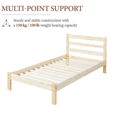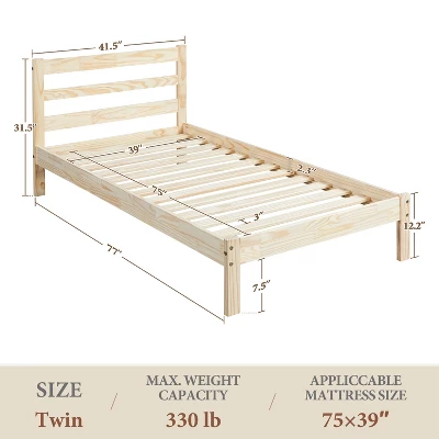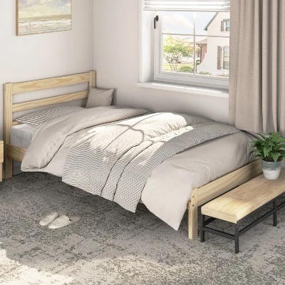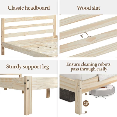 - 【Classic Silhouette, Natural Style】Boasting a natural wood grain pattern and sleek wood finish with the simplicity of a classic, paneled headboard, and minimalist silhouette, this solid pine wood platform bed with headboard is universal enough to fit into any bedroom aesthetic.