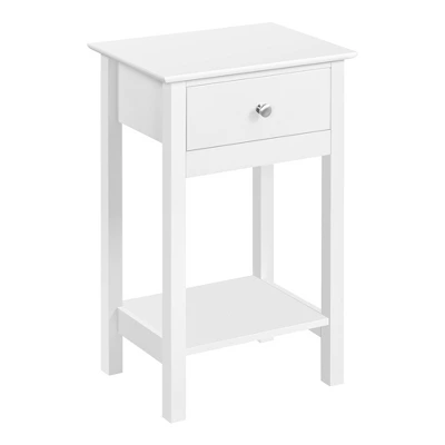- This practical bedside table is made of high-quality CARB P2 MDF board and rubberwood legs, which ensures a long life span. Its water-proof treated surface makes it easy for your daily maintenance. This slim nightstand features a practical drawer, providing ample storage space to keep your items organized. The elegant knob on the drawer realizes easy opening and closing of the drawer, which is practical and functional. Its proper size makes it perfect for living rooms, hallways, and bedrooms to be used as a console table, coffee table, or bedside table.