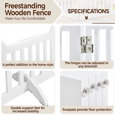 - 【4-Panel Pet Fortress】Crafted from sturdy 18mm MDF boards, this pet gate forms a robust wooden barricade to keep your pets securely enclosed, restricting your pet’s movements within your home to prevent any possible escapes or mischief.